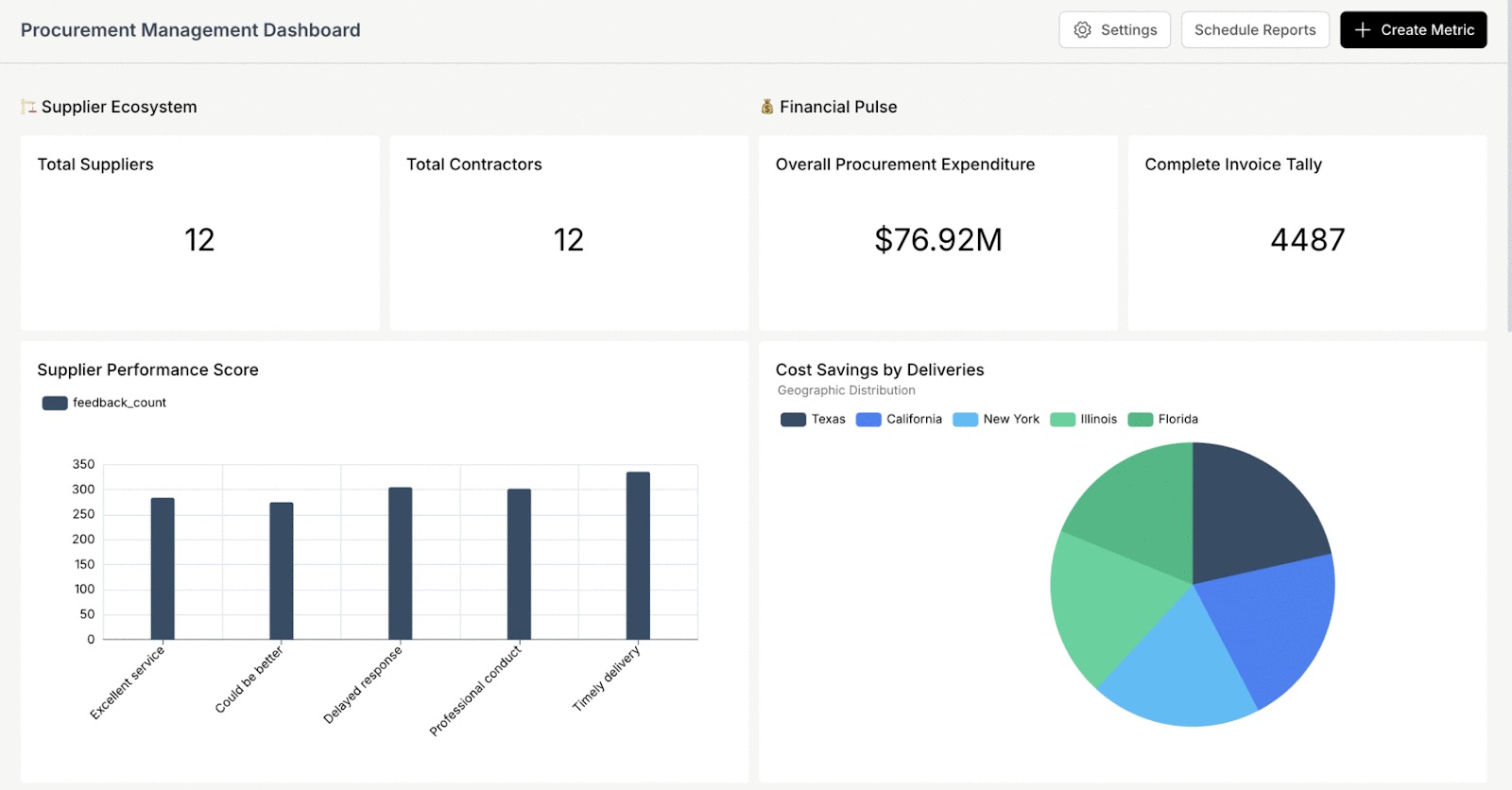 Here is a sample procurement management dashboard created using Databrain’s chat mode: