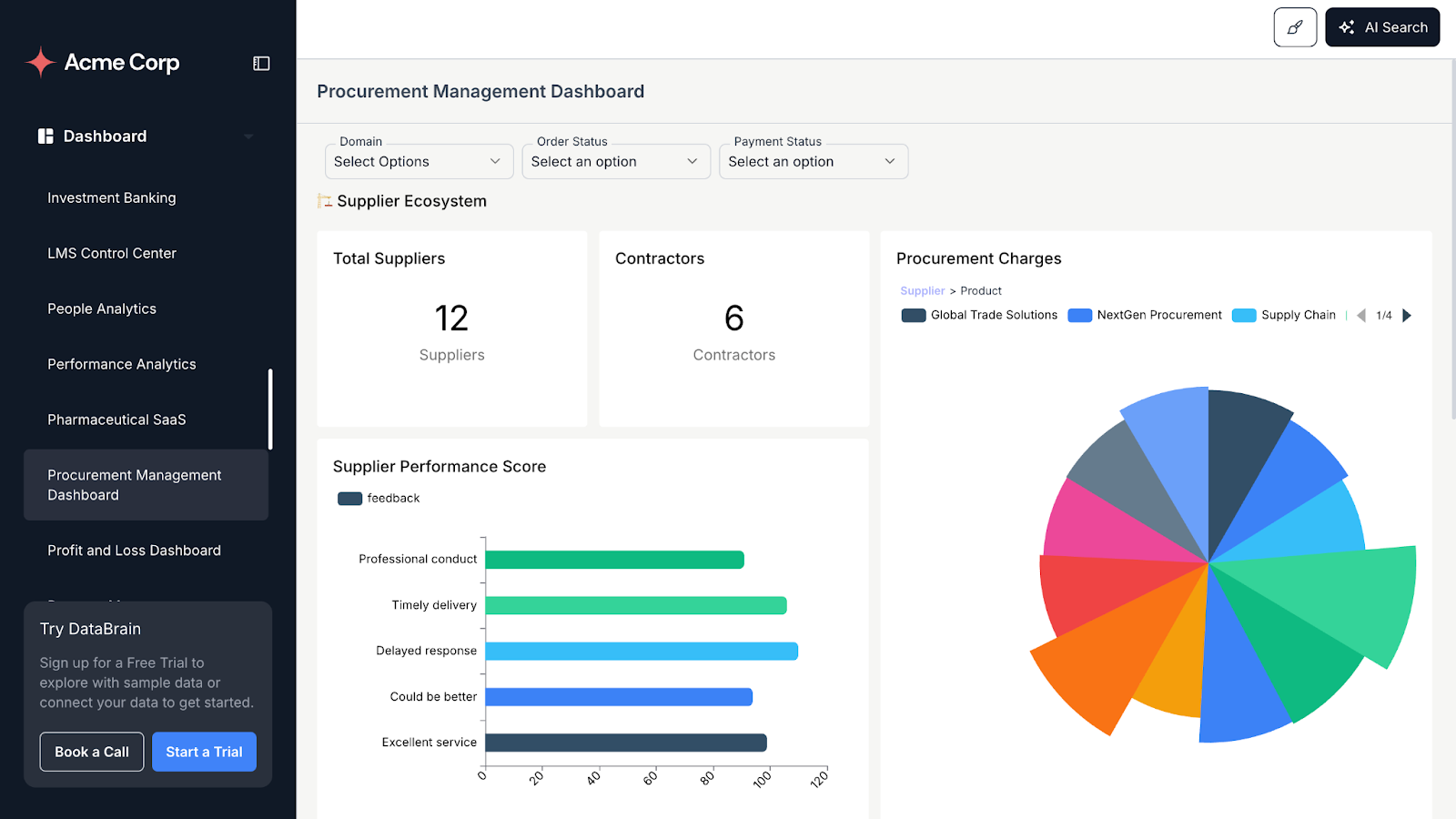 Here are a few sample dashboards created and embedded using Databrain: